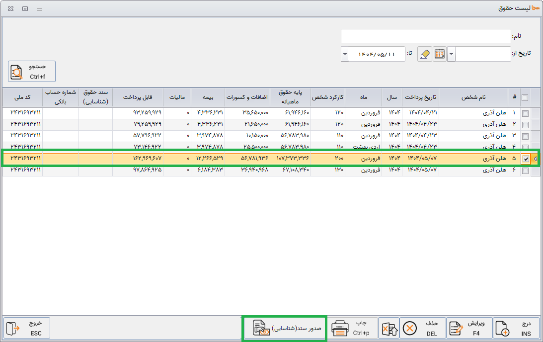 1. به گزارش لیست حقوق کارمندان مراجعه نمایید.
