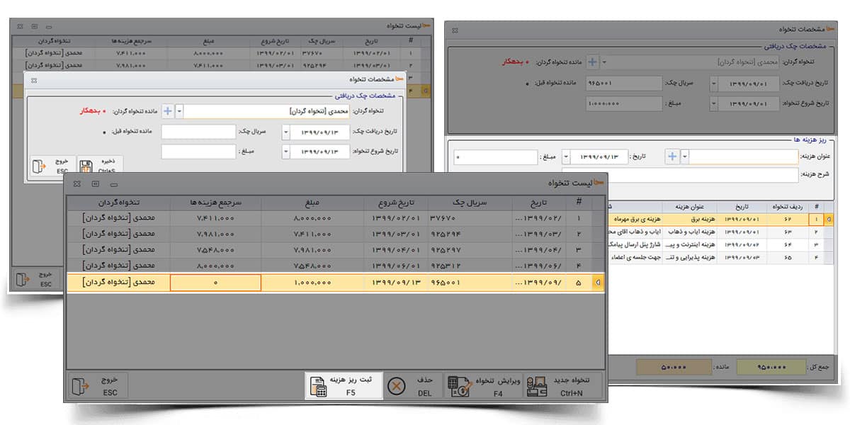 2- امکان مشاهده ی دفتر تنخواه به تفکیک تنخواه گردان