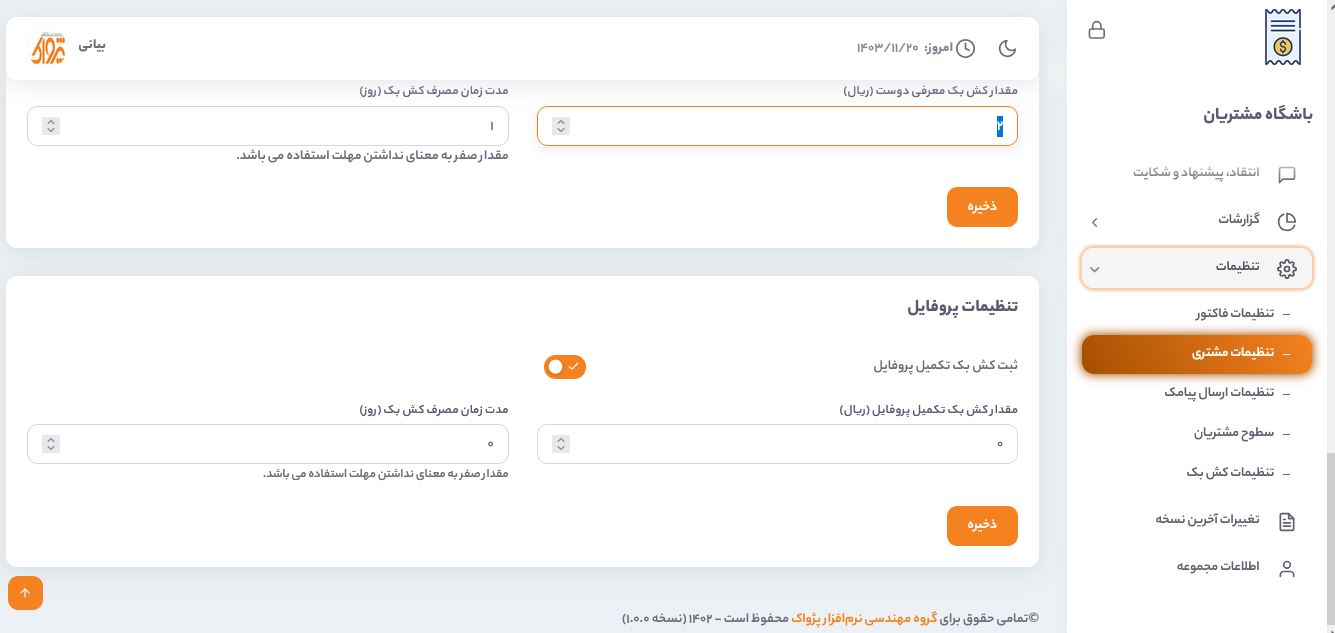 - مقدار کش بک را بر اساس سیاستهای مجموعه و جذابیت آن برای کاربران تعیین کنید. این مقدار میتواند به عنوان انگیزه ای برای تکمیل پروفایل توسط کاربران در نظر گرفته شود.