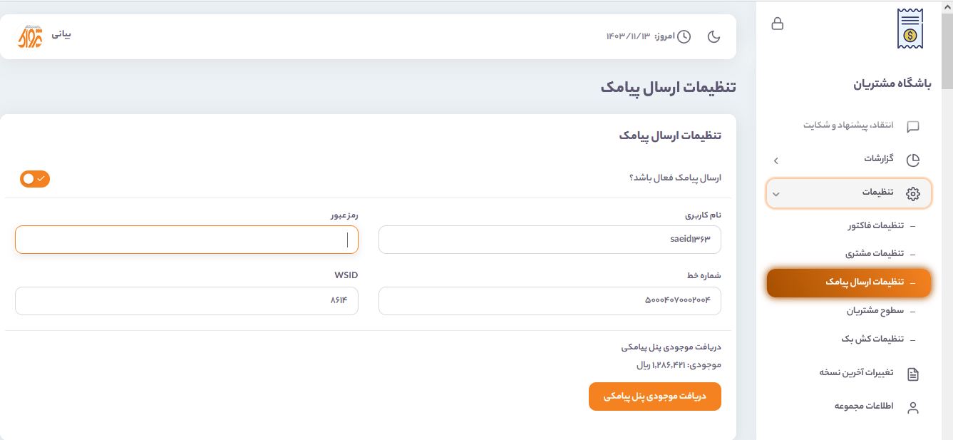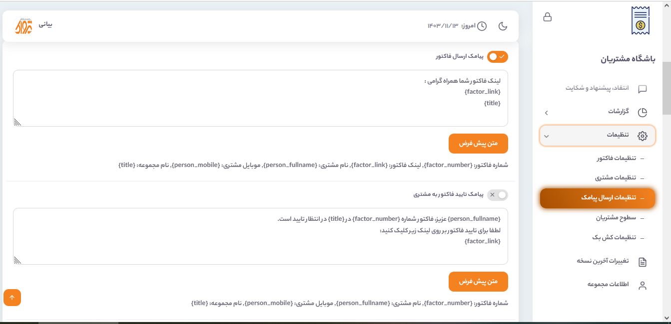 برای ارسال پیامک به مشتریان پس از تنظیم موارد مربوطه، با کلیک به روی مراحل زیر را دنبال کنید: