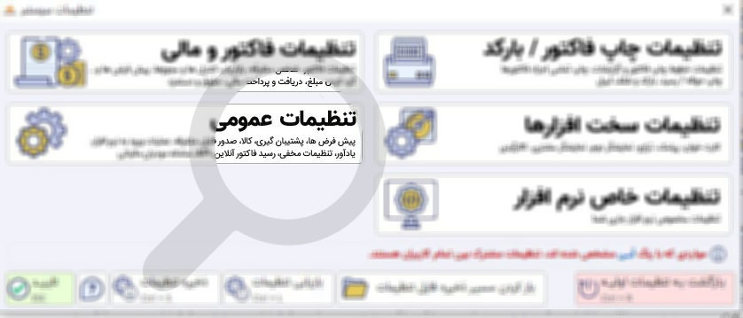 قبل از مشاهده و استفاده از فاکتورهای ثبت شده در نرم افزار، معمولاً لازم است تنظیمات اولیه مربوط به فاکتورها را انجام دهید. این تنظیمات شامل موارد زیر می باشد:
