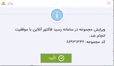 - در مرحله سه از شکل فوق نسبت به تکمیل “اطلاعات مجموعه درسامانه رسید آنلاین فاکتور”، اقدام نمایید. سپس دکمه “ویرایش اطلاعات مجموعه در سامانه رسید آنلاین فاکتور” انتخاب کنید.